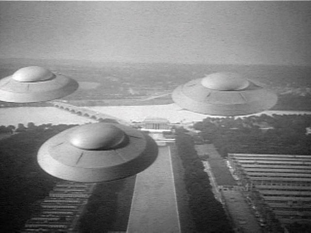 UFOs on its head, casting a flying saucer in the role of an Earth-based ship